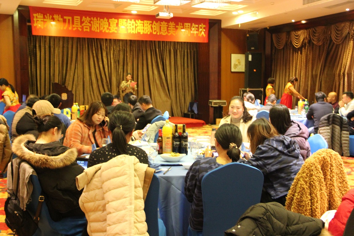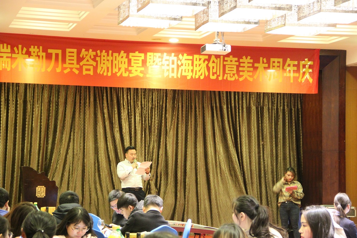晚上安排對來參加此次培訓(xùn)的及不能參加白天培訓(xùn)的新老客戶和朋友,隆重舉行了瑞米勒刀具答謝晚宴暨鉑海豚創(chuàng)意美術(shù)周年慶活動(dòng)!