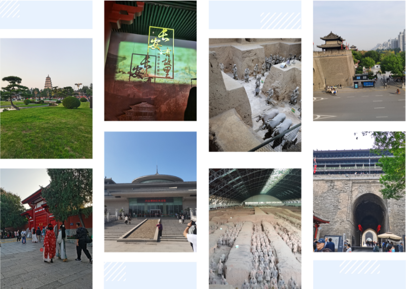 接下來幾天的行程里,我們登上了西安城墻,吹著明城墻上的風(fēng),俯瞰古城風(fēng)貌與現(xiàn)代化城市的融合;走進(jìn)世界八大奇跡之一的秦始皇兵馬俑博物館,見證秦朝的輝煌與壯觀,被古人的智慧而折服;在西安博物館,了解古城西安的建都?xì)v史及都城發(fā)展史;走一走大唐不夜城,夢(mèng)回大唐,感受大唐盛世的繁華,并觀看了精彩的演出;在城墻小南門早市,體驗(yàn)古城的煙火氣;在回民街,品嘗各種小吃,領(lǐng)略西安的美食文化;走進(jìn)大雁塔,領(lǐng)略古都藝術(shù)的魅力......
