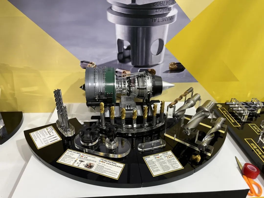 根據(jù)馬來西亞市場需求,肯納金屬帶來了最新的創(chuàng)新產(chǎn)品,結(jié)合展盤中央的飛機發(fā)動機模型,進行航空航天解決方案相關(guān)產(chǎn)品展示,包括GoMillTM PRO、7792 VX銑刀、HPR鉆頭以及采用先進的KenGold涂層技術(shù)的KCP25C、KCU10B, KCU25B材質(zhì)車刀片,給現(xiàn)場客戶留下了深刻的印象。