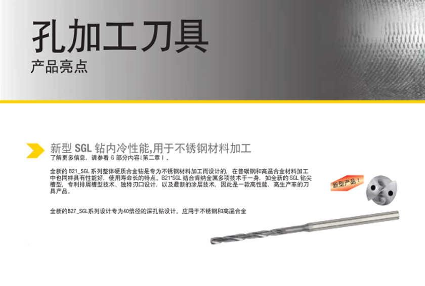 新型SGL鉆內(nèi)冷性能,用于不銹鋼材料加工